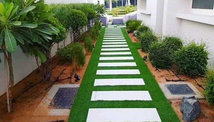 Softscape, hardscape, pathways, edging, lighting, and outdoor features crafted to thrive in the UAE climate.